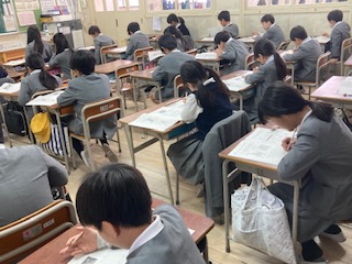 今日と明日、3〜6年生において、大阪市小学校学力経年調査を行っています。今日は国語と社会を行い、明日は算数と理科、英語(5.6年生のみ)を行います。子どもたちが自分の学習理解度や学習状況を知り、目標をもって主体的に学習に取り組めるようにするためのものです。