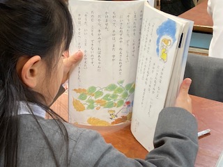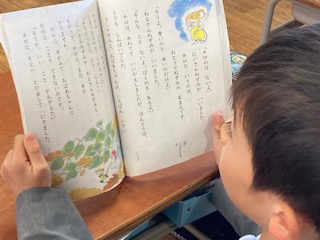 1年生の子どもたちが国語の授業で物語を読んでいました。『おとうとねずみ チロ』というお話です。1年生の教科書の中では少し長めのお話です。先生がまずゆっくりとていねいに読んでくれました。それからもう一度、チロの気持ちを思い浮かべながら2回目を読みました。揺れるチロの気持ちとやさしいおばあちゃんの心温まるお話なので、毎年の1年生の子どもたちが大好きな物語です。今年の1年生の子どもたちもきっと気にいると思います。