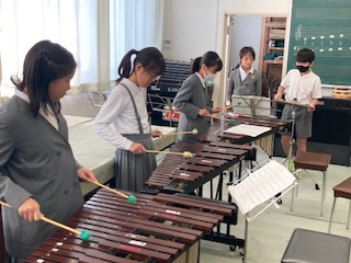 音楽は歌うことや演奏することも楽しいですが、鑑賞することもとても大切だと思います。よい音楽を聴いて豊かな情操を養うことも必要ですね。5年生の子どもたちがモーツァルトの[アイネ・クライネ・ナハトムジーク第1楽章]という曲を鑑賞していました。どんな印象を受けたのか、感想を教頭先生と話し合っていました。その後、教頭先生は弦楽器の紹介もしてくれました。ヴァイオリン、ヴィオラ、チェロ、コントラバス…、それぞれどんな音色がするのかな。高い音、低い音?みんなで音の聴き比べです。教頭先生は音楽が得意です。最後にみんなでリズムを合わせて楽しく[キリマンジャロ]という曲を合奏しました。