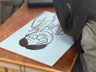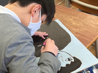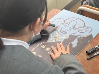 6年生の子どもたちが彫刻刀に取り組んでいました。木版画です。平刀、切出し刀、丸刀、三角刀…、用途によって使い分けながら彫り進めていきます。彫った部分は白くなり、彫らなかった部分は黒くなります。当たり前のことですが、彫り進めていくうちに、よくわからなくなってきます。常に出来上がりをイメージして進めていかないといけません。なぜなら彫刻刀は彫ってしまうともう元に戻せないからです。また版画は版画ならではの独特の表情を表すことができます。刷り上がってみないとまったく様子がわからないところが面白いところでもありますね。下描きができていない子もたくさんいたので、完成はまだまだのようです。