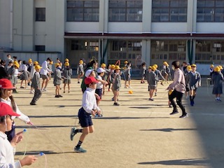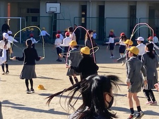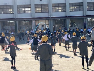 12月1日より『なわとび週間』を続けてきましたが、今日で最終日となりました。最終日にふさわしく心地よい太陽の日差しが降りそそぐ中で、子どもたちは元気よくなわとびをしていました。これからも寒さに負けないように、自主的に体力づくりに努めてほしいと思います。来年1月には『かけあし週間』を行います。ミニマラソン大会は1月24日(水)に実施する予定にしています。