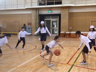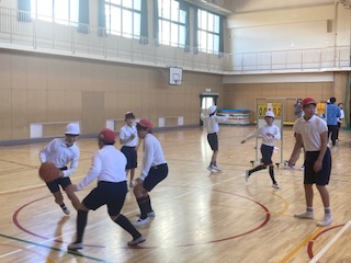 6年生の子どもたちが元気いっぱいにボールを追いかけています。体育の授業でバスケットボールに取り組んでいました。チームで作戦を考えて挑みますが、なかなかその通りにはいきません。上手くパスがつながらずに攻守がすぐに入れ替わってしまいます。でもその分、子どもたちの動きがより活発になって、ゲームとしてはとても盛り上がっていました。どういう動きをすればチームとしての完成度を高めていくことができるのか、これからさらに追求してほしいですね。そこにゲーム領域の運動の楽しさがあります。