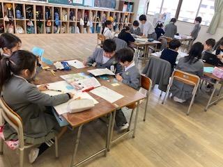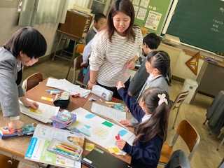 先日、2年生の子どもたちは地域にあるローソンさんとメロンリッチさんに社会見学に行ってきました。そのときに質問して教えてもらったこと、見学してわかったことや気づいたことなどをグループで一枚の紙にまとめていました。見てもらったときにわかりやすいようにするにはどんな工夫をしたらいいかな?どうしたら上手く伝えられるかな?…、2年生なりにアイデアを出し合いながら考えています。低学年の時からこのような活動にたくさん取り組んでいくことは、これからの身につけたい力に大きくつながっていくと思います。