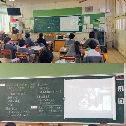 5年生は「放送局は集めた情報をどのようにまとめ ニュース番組にして放送しているのでしょうか」というめあてで学習していました。