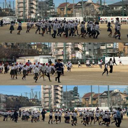 昨日はあいにくの通り雨で出来ませんでしたが、今日から、24日の耐寒ミニマラソンに向けて、15分休みを利用して、耐寒かけあし運動がはじまりました!