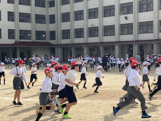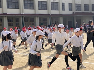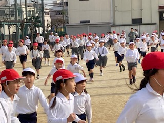 昨日から耐寒かけあしが始まっています。2時間目と3時間目の間の15分休憩に、全校児童で運動場を走ります。自分のペースで、できるだけ歩かずに走ります。今日は太陽の光が降りそそぎ、あたたかい中でのかけあしでした。みんな元気よく笑顔も見せながら走っていました。23日まで続けます。24日に淀川河川敷でミニマラソン大会をする予定です。まわりと競う必要はありませんが、自分の中でしっかり目標をもって頑張ってほしいと思います。