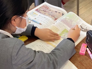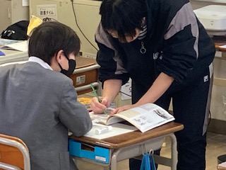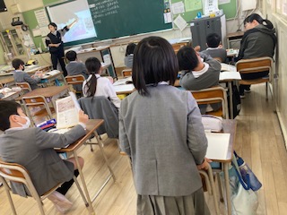 3年生の社会の授業です。大阪市の移り変わりについて学習しています。140年前の大阪駅のようすと現在の大阪駅のようすを見比べて、気づいたことを発表していました。当時は、長く黒いえんとつから黒いけむりをはき、大きな音を立てて走る汽車を人々は[火の車]だと言って驚いたそうです。人々の服装も和服と洋服が混ざっていて、髪型もいろいろです。子どもたちはいろいろ気づいたみたいです。2月には社会見学で[大阪くらしの今昔館]に行きます。大阪の移り変わりが体感できると思うので、今から楽しみですね。