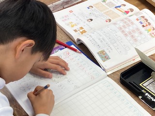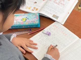 1年生の子どもたちが算数の授業で[かずの大きさくらべ]を学習していました。87と56は…、79と73は…、どちらが大きいですか?またその理由も教えてください。子どもたちは積極的に手をあげて答えていました。なかなか筋道立てて話す様子に感心しました。そのあと、わかったことやまとめを先生と一緒にノートに書いていくのですが、みんなしっかりと書いていました。入学したての頃と比べると、勉強する姿勢やノートを書く力などが驚くほど伸びましたね。できることがたくさん増えて、子どもたちの成長は本当に早いです。
