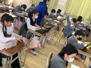3年生の子どもたちが国語の学習[外国のことを紹介しよう]で、応用編としてクイズ作りに取り組んでいました。まず自分でどの国を調べたいか決めます。決めたら調べたいことを考えます。食べ物とか、服装とか、遊びとか、家の様子とか、有名な場所とか、スポーツとか…。全部で3つ調べるのがノルマです。調べたらクイズ作りです。○×にするのか、3択にするのか…、正解だけでなく不正解の答えも考えないといけません。子どもたちはパソコンを使って調べていましたが、他の子に見られたくないので、こそっと画面を体て隠しながら操作したり、無言で手招きして先生を呼んだりしていました。