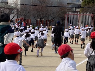 3学期が始まった次の日から、体力づくりを目指して、全校みんなでかけあしに取り組んできました。楽しく走ることができました。明日はいよいよミニマラソン大会です。一人一人が自分なりの目標を掲げて走り切ってほしいとおもいます。いつもの淀川河川敷豊里大橋下でしますので、ご都合のつく保護者の皆様は、ぜひ来ていただいて子どもたちに声援を送っていただければと思います。