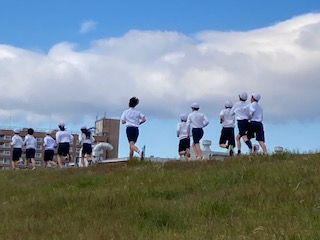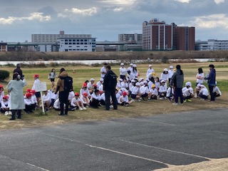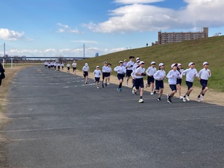 午前中の11時頃よりミニマラソン大会を行いました。今日はかなり寒さが厳しく、子どもたちも朝から『今日は寒いなあ』『でも頑張らないとなあ』『少し不安やなあ』『大丈夫かなあ』などと教室で話していました。淀川河川敷でのミニマラソン大会は大道南小の冬の風物詩とも言える行事です。1年生から始めて6年生になるまで、その時々の目標をしっかりと掲げて走ります。子どもたちの成長の過程を感じることができる行事とも言えます。