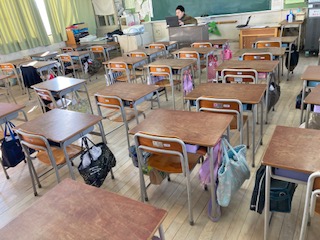 1時間目、4年生の子どもたちは学年休業のため、オンラインで先生とつながっています。朝の出席を取ってあいさつを交わします。[○時間目にはドリルやリコーダーをしてください]や[○時間目にはオンラインで算数の授業をします]や[○時間目には理科の動画を見てください]などの指示や一日のおおよその計画を伝えていました。できることは限られていますが、少しでも子どもたちが有意義に自宅でも学習に取り組めるように努めています。でも教室はしーんと静まり返っていて、先生の声だけが寂しく響いています。やっぱり教室には子どもたちがいてほしいです。