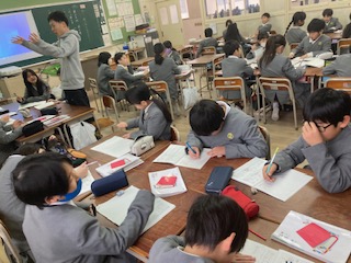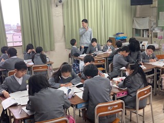 4年生の国語の授業です。[数え方を生み出そう]という説明文を読んで、お互いに意見を交換したり感想を述べたりしていました。日本と外国の文化の違いや受け取り方の違いを筆者は子どもたちに語っているのですが、一体筆者が何を読み手に伝えたいのか、また内容を理解した上で子どもたちはどんなことを考えていかないといけないのか、なかなか見ていて難しそうなテーマでした。子どもたちは進んで自分が考えたことをグループの友だちに伝えたり、またわかったことなどをノートにまとめたりしていて活動的な様子がたくさん見られました。