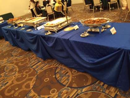1日目の夕食は、ホテルでのバイキングです。たくさんの種類のお料理が並んでいます。