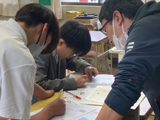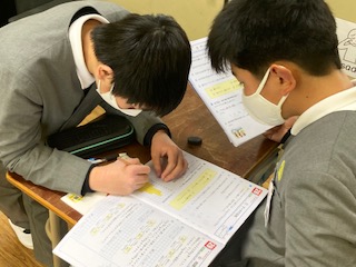 6年生の子どもたちが算数の問題に取り組んでいます。今までの学習を振り返りながら復習しています。特に6年生は中学校に向けて、既習内容がしっかりと身についているかどうか確認しておきたいところですね。学習を定着させるためには教え合いが一番です。相手に教えるという行為を通して、さらに理解が深まっていきます。もちろん教えてもらう方も耳を傾けて理解が進みます。お互いに意見や考えを積極的に交わしながら学習を進めていくことは最近の学習活動の主流となっています。それにしても6年生の子どもたちの主体性がしっかりと育っていることにうれしく思います。