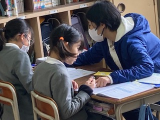 3年生の子どもたちが算数の復習問題に取り組んでいました。この時期になると、どの学年も振り返りの時間が増えますね。特に算数は習ったことをもとにして、その上に次の学年の新しい内容が成り立っているので復習は欠かせません。先生と一緒に…、友だちと一緒に…、しっかりと身についているか確かめていきます。わからないところは恥ずかしがらずに進んでたずねるようにします。そして『なるほど、そっかぁ!』『教えてくれてありがとね!』という言葉が出てくると最高ですね。