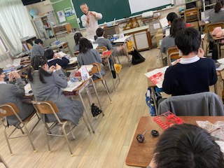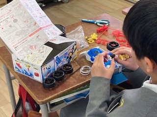 5年生の子どもたちが理科の授業で[電流のはたらき]について学習しています。今日はまずはじめのコイル作りに取り組んでいました。教材の説明書を見ながら作業を進めていきます。ボビンにエナメル線を一巻きずつていねいに巻いていかないといけないので、わりと肩がこりそうな作業ですね。途中で『あれ?今、何回巻いたかな?』…、そうです、全部で50回巻くのですが、途中で話しかけられたりするとわからなくなってしまいます。『まっ、いっか!』と適当に巻き続ける子と『あーやり直しや!』とやり直す子と…、性格で分かれます。