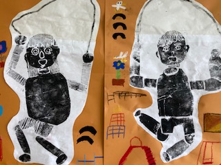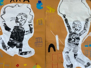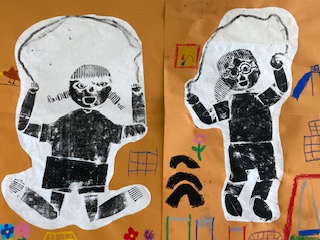 3年生の教室に子どもたちの紙はんが作品が掲示してありました。子どもたちの個性や頑張りがとても表れている作品となっています。なわのたるみ具合やひざの曲がり加減が3年生の子どもらしらをより強調しているように感じました。顔の表情もはんがならではの雰囲気をかもし出しています。みんなで大空に向かってジャンプ!って感じですね。