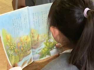 3年生の教室の前を通ると、子どもたちの声が聞こえてきました。元気で楽しそうな声です。国語の教科書の一番初めのページに載っている『春の子ども』という詩を読んでいました。子どもたちは[ふきのとう]や[つくし]の挿し絵も見ながら、春を感じていました。