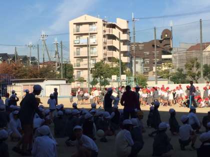 毎週、木曜日の朝は児童集会を行っています。主に縦割り班で集まって、ゲームなどをしています。