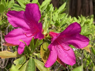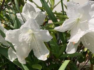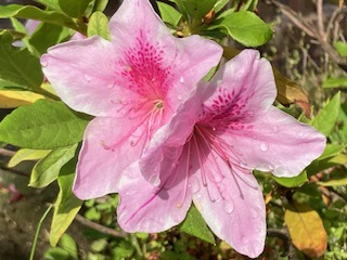 桜の次に学校を彩るのはツツジです。校内のツツジも少しずつ咲き始めました。ツツジにもいろいろな種類がありますが、校内で見られるのは『ヒラドツツジ』です。(たぶんです。あまり植物には詳しくないので…)ツツジの中でも大型の品種で直径10cmくらいになります。赤や白、ピンクなどがあって、とても色あざやかです。これから5月にかけて、満開になってくると思います。花びらを見てみると、朝つゆがのっていました。太陽の光を浴びながら、キラリと光っているように見えました。