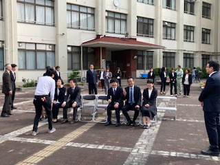 朝の時間に、職員写真を撮影しました。先生たちもみんなスーツに着替えて、晴れやかな気持ちでのぞみます。前の方や真ん中辺りにはなかなか来たがりません。子どもたちには『さっさと並びなさい』と言っているのに、写真屋さんに誘導されています。そしてさらに『顔がこわい、こわいですよー!』『笑って笑ってー!』と何度も指導もされてしまいました。それでも何とか無事に撮り終えることができました。撮り終えると、なぜかホッとして笑顔がこぼれる先生たちでした。保護者の皆さま、地域の皆さま、令和6年度の教職員たちをどうぞよろしくお願いいたします。