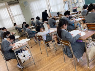 今日の1時間目と2時間目に、6年生の子どもたちを対象に[全国学力・学習状況調査]が行われています。教科は[国語]と[算数]です。今日18日に日本全国の小学校の6年生児童が一斉にテストを受けています。教室をのぞいてみると、子どもたちは集中力を高めて真剣な眼差しで取り組んでいました。今までに身につけた力を十分に発揮して、最後まであきらめずに取り組んでほしいと思います。がんばれ、大道南の子どもたち!