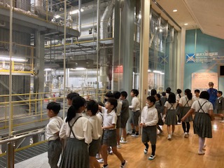 工場の人に『なぜごみを燃やすのでしょうか』と聞かれても、子どもたちはなかなかすぐに答えられません。[ごみの量(容積)を減らすことができる][衛生上の問題からバイ菌や匂いなどの発生を防ぐため]などの理由について教えてもらいました。その他にも、焼却された灰は埋め立て地に運んだり、排ガスや排水はとてもきれいにしてから排出していることも教えてもらいました。ごみを燃やす温度は約900℃にもなるそうで、その熱もエネルギーに変えて、それを利用して電気も作っているということでした。
