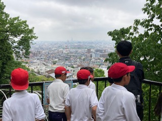 たくさん遊んで楽しみました。『疲れたー』『おもしろかったー』『お茶もうないー』とか…、子どもたちも十分に満足したようです。午前中は見えなかった大阪平野も一望することができ、あべのハルカスも見ることができました。この遠足を通して、5年生になってさらに仲間づくりも進みました。よかったです。それでは今から学校に向けて帰りまーす。