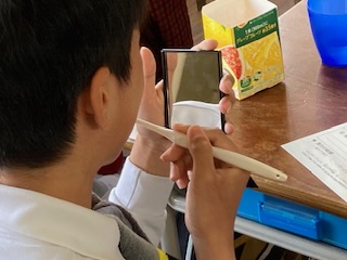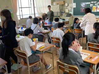 歯科衛生士の先生に来ていただいて、6年生の子どもたちに[歯と口の健康教室]を行いました。歯垢染色体験を通してみがき残しを確認したり、歯肉の観察を通して歯周病について学んだりしました。歯茎、歯垢、歯みがき、おやつ、かむ回数、好き嫌いなど…、チェックカードで自分の歯の健康度を計ります。歯はとても大切です。いつまでも丈夫で健康な歯を保ちたいですね。子どもたちは歯科衛生士の先生の話を聞きながら、熱心に鏡をのぞき込んでいました。