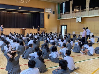 今日は[いじめについて考える日]です。大阪市教育委員会が全小学校において、5月第2月曜を[いじめについて考える日]として設定しています。本校でもその取り組みを行っています。1時間目に1〜3年生と4〜6年生に分けて、それぞれ講話を行いました。2時間目には各学級の実態に応じて、[いじめ]や[いのちの大切さ]について話し合います。子どもたちがお互いについてよく理解し合い相手の立場に立って考える機会にすることで、いじめを許さない学級づくり、学校づくりを進めていきます。もちろんこの取り組みは一部であって、日々の指導を積み重ねていかなければいけません。