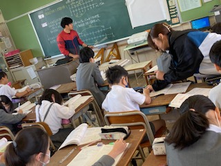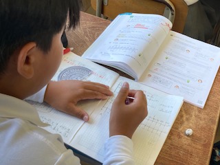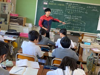 5年生の算数の授業です。問題は[1mの値段が80円のリボンがあります。買う長さが1m、2m、3m…と変わると、それにともなって代金はどのように変わりますか。]です。これは『比例』の問題ですね。子どもたちはまず表を作って表を埋めていくことで確認していました。次に数直線でも確かめていきます。でも毎回、表や数直線を書いていくわけにはいかないですよね。このあとは問題を解くための[式]を考えて作っていくことになります。さあ頑張って勉強しましょう。