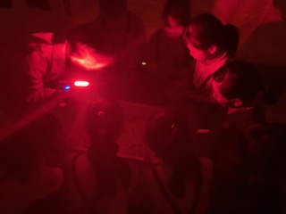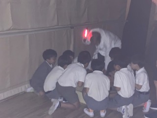 ホタルの幼虫も光るんだよ…、その言葉に子どもたちも興味津々です。実際に講堂の舞台を真っ暗にして見せてもらいました。子どもたちはホタルの幼虫が入ったケースを囲んで、手をたたきながら大声を出します。それをピタッとやめたときに光るそうです。実際にやってみたら『あー、光ってるー!』『見えたー、光ってるー!』『すごいー!』…、子どもたちはホタルの幼虫が光るのを見て、とても喜んでいました。初夏に成虫になったホタルを放すときが楽しみですね。