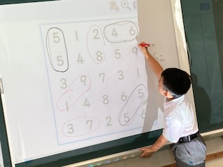 1年生の子どもたちが10を作っていました。算数の授業です。10を分解すると何と何になるのか、何と何を合わせると10になるのか、10の構成について学びます。ビンゴの表を見ながら、たて・よこ・ななめで10を見つけて線で囲みます。『こんなん かんたんや』『せんせい できたで』…、子どもたちはさっさと終わらせてしまいます。なぜなら前に出てきて、みんなの前で発表したいからです。『はい!はい!せんせい あてて!』『まだいっかいもあたってないよ!』…、子どもたちの元気な声が響いています。