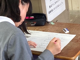 5年生の子どもたちにテストが配られます。リーディングテストは知識を問うテストではなく、文章の意味を正しく読み取れているかを見極め、一人一人の基礎的な読解力を測定・診断するものです。テストを見てみると、大丈夫、簡単です。マイケル先生のスピーチを聞いて、当てはまるものに○をつけるだけです。簡単です。といっても、子どもたちは急に真顔になって、マイケルの言葉に真剣に耳を傾けるのでした。その横では実際観察中のインゲンマメが芽を出していました。