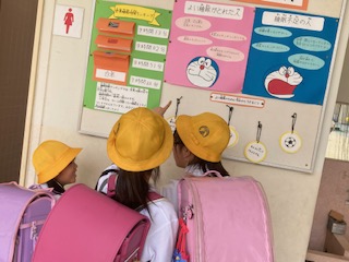 保健室前の掲示板に3人の子どもたちが立ち止まっています。何時間くらい睡眠をとっていますか?…、11時くらいに寝て7時に起きるから8時間くらいかなと答えてくれました。掲示物には小学生は9〜12時間くらい睡眠をとるようにと書いてありました。う〜、1時間足りない。さすがに12時間は朝7時に起きるためには夜7時には寝ないといけないので無理ですね。でもできる限り睡眠を多くとるように心がけましょう。