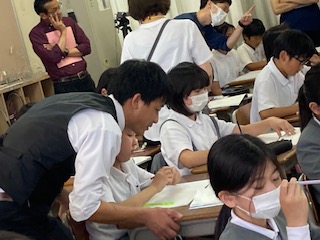 5時間目に5年生において公開授業を行いました。今年度初めてです。これから校内における研究活動も活発化していきます。昨年度までは算数を中心としていましたが、今年度より国語を中心に取り組んでいきます。総合教育センターよりスクールアドバイザーの講師先生にも来ていただきながら研鑽を積んでいきます。今日は説明文を読んで要旨をまとめたり、考えたことを交流し合ったりする学習でした。多くの先生たちが見守る中、子どもたちの積極的に授業に向き合う姿がたくさん見られました。