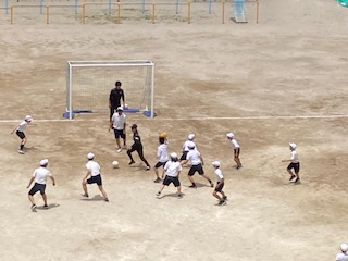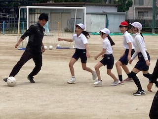 午前中に[夢授業]を6年生の子どもたちに行いました。夢授業はアスリートを学校に講師として招き、交流を通して夢を育み、スポーツへの興味関心を喚起することを目的としています。今日はセレッソ大阪のコーチ陣に来ていただきました。気持ちよくみんなで体を動かしたり一緒にサッカーボールを追いかけたりして楽しいひとときを過ごしました。コーチ陣とのミニゲームではやっぱり上手で、ボールを奪うことができません。それでもボールを奪えた(奪わせてくれた?)ときは、うれしくて歓喜の声をあげていました。子どもたちにはこれからいろいろなことに夢をもってほしいと思います。
