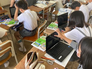 5年生の社会の授業です。日本は南北に細長い国なので、北と南では大きく気候が異なります。各地の気候はどのような特色があるのだろうか。北海道はどんな感じ?沖縄は?太平洋側と日本海側では違うのかな?内陸部はどうだろう?その他にもあるのかな?…、日本の気候は大きく分けて6つあるそうです。子どもたちはそのことについて調べることにしました。調べ方は子どもたち自身が決定します。教科書や資料集、タブレットなどから降水量や平均気温などの必要な情報や特徴的なものをピックアップして収集し、各地域における気候の違いについてまとめていました。