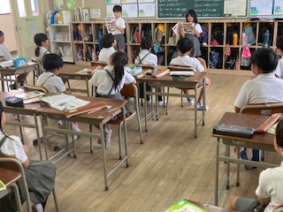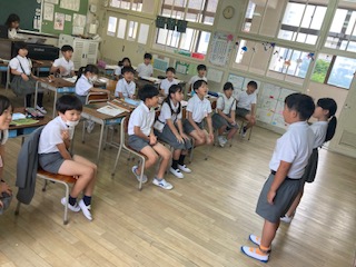 3年生の子どもたちが歌のテストをしていました。夏も近づく 八十八夜…、歌は懐かしの『茶つみ』です。教室の後ろをステージに見立てて、二人ずつ歌っていきます。みんなが注目する中、少し恥ずかしい気持ちもあるのですが、それでも子どもたちはかわいらしい声で一曲を歌い上げます。聞いてあげているお友だちも『がんばって』という励ましの表情を見せていました。