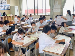 図工の作品制作の裏では 5年生
