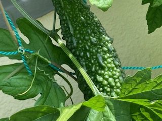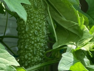 校舎の壁を利用した緑のカーテンの取り組みで育てているゴーヤ(にがうり)の実ができていました。小さくて黄色い花を咲かせてると思っていたら、いつの間にか立派なゴーヤの実ができていました。これから順にできてくると思います。苦味が特徴のゴーヤですが、栄養も豊富で今の時期が旬の野菜です。あざやかな緑色が暑い夏をより色濃く感じさせてくれますね。