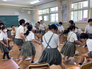 6年生の子どもたちがフルーツバスケットをして楽しんでいました。お題はフルーツではなくて、自分たちがそれぞれ考えます。例えば『給食が大好きな人』『毎朝髪の毛をセットしてる人』など、いろいろです。中でもおもしろかったのは『6年間ずっと俺と一緒のクラスの人』…いるのかな?すると一人の女の子が、すーっと音もたてずに静かに立ち上がりました。『いたー!』『いるんだね』『すごいー』思わず驚きと感嘆の声が上がりました。お題を言った男の子も確認して言ったわけではなく思いつきで言ったみたいだったので、『そうだったのかー』と改めてまたびっくりしていました。(^。^)