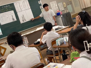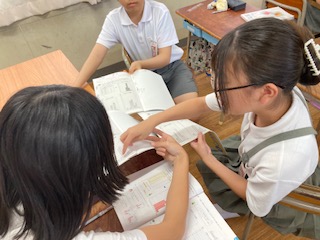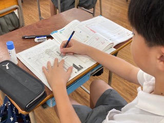 6年生の子どもたちが算数の授業でヒストグラムの学習をしています。ヒストグラムは棒グラフと似ていますが中身は違います。棒グラフが種類ごとのデータの個数を表すのに対し、ヒストグラムはデータの分布状況(散らばりの様子)を視覚的に認識するために用いられます。そこから何がわかるのか、何を推察することができるのか…、その先まで考えを及ぼすことが重要になってきます。子どもたちは与えられた情報からヒストグラムを作成し、そして導き出した自分の考えを友だちと交流し合っていました。なかなか難しいことをしていますね。
