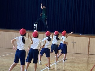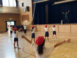 運動会に向けてダンスの練習が始まりました。2時間目に講堂で練習していたのは4年生の子どもたちです。ダンスは夏休みの間に先生たちが考えます。選曲や振り付け、隊形移動など…、研修に行って参考にしたり感性を生かして独創的に考えたり、とにかく結構大変です。でも子どもたちが生き生きと踊って自分をしっかりと表現できたら、それが先生たちの喜びへと変わります。だから先生たちも一生懸命に一緒に踊ります。これからどの学年も少しずつダンスの練習を始めていきます。運動会は10月19日(土)です。楽しみですね!