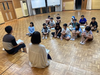 室長会議が行われました。もうすぐ消灯・就寝時間となります。今日もたくさん活動しましたし、明日もあります。疲れをとるためには、就寝に向けてどんなふうに過ごしたらいいのか、先生が話してくれました。それを部屋のメンバーに伝えます。また明日の朝の起床時の行動についても、室長のみんなで確認をしました。今日一日が終わろうとしています。子どもたちはまだすぐには眠れないかもしれませんが、本日のホームページはこれで終了します。おやすみなさい。