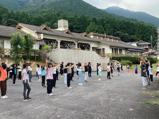 おはようございます。子どもたちはみんな元気に起床してきました。朝の会や体操を気持ちよく行いました。今はまだ気温も高くなく過ごしやすいです。自然の朝を感じることができました。今日もしっかりと活動していきます。