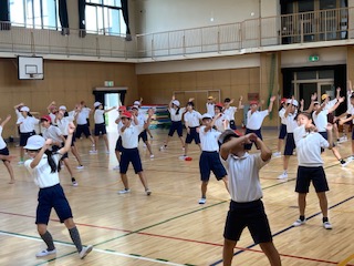 5年生の子どもたちの元気な声が講堂に響きわたっています。南中ソーランです。運動会で毎年5年生は南中ソーランを踊っています。腰を左右にしっかり落とし腕を力強く振り上げて、からだ全体で厳しいニシン漁の様子を表現します。大体の動きは覚えることができるのですが、細かなところはまだまだです。まだまだ満足できるまで先は長そうです。全員で一致団結して、全員が達成感を味わい、喜びを分かち合えるまで、とことん追求していってほしいと思います。