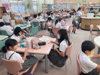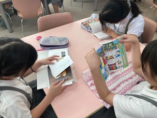 4年生の子どもたちが図書室で静かに本を読んでいます。本格的に運動会の練習も始まり、並行して普段の学習もしなければならない中で、あわただしくバタバタと過ごす日々が続いています。子どもたちの気持ちももしかしたら落ち着かない状態があるかもしれないですね。そんなときにゆっくりと本を読みながら、ゆったりとした時間の流れを過ごすのもいいと思います。子どもたちは思い思いの本を手にとって、おだやかな時間に心を落ち着けていました。『ちょっと休息をかねて』ですね。