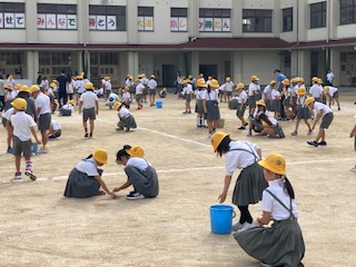 今日の児童集会は各学年をエリアごとに分けてみんなで運動場の石拾いをしました。運動会に向けて少しずつ整備も進めていきます。どこから入ってくるのか、よく見てみると、割りと大きめの小石も結構見つかります。こけたときに危ないですね。みんなで気持ちよく活動できるように一生懸命に石を拾いました。子どもたちの力を借りると作業も素早く進みますね。あっという間にたくさんの小石が集まっていました。